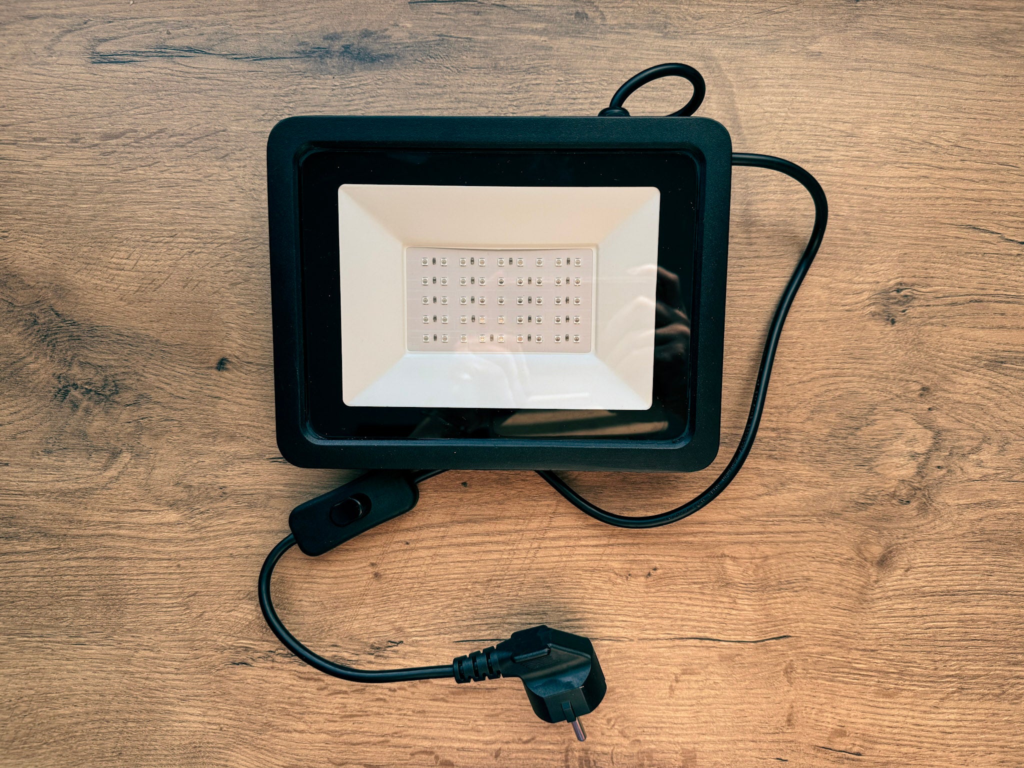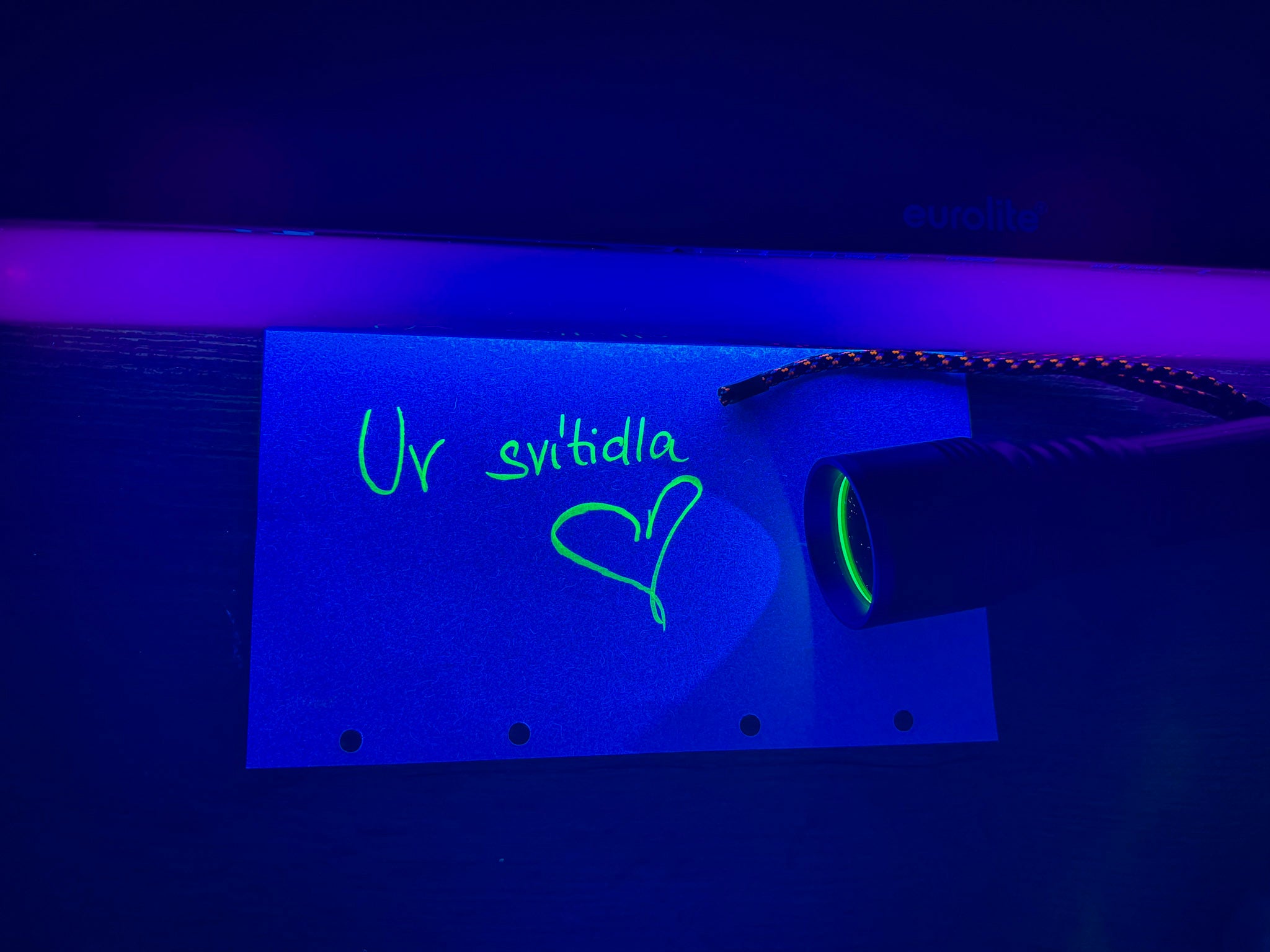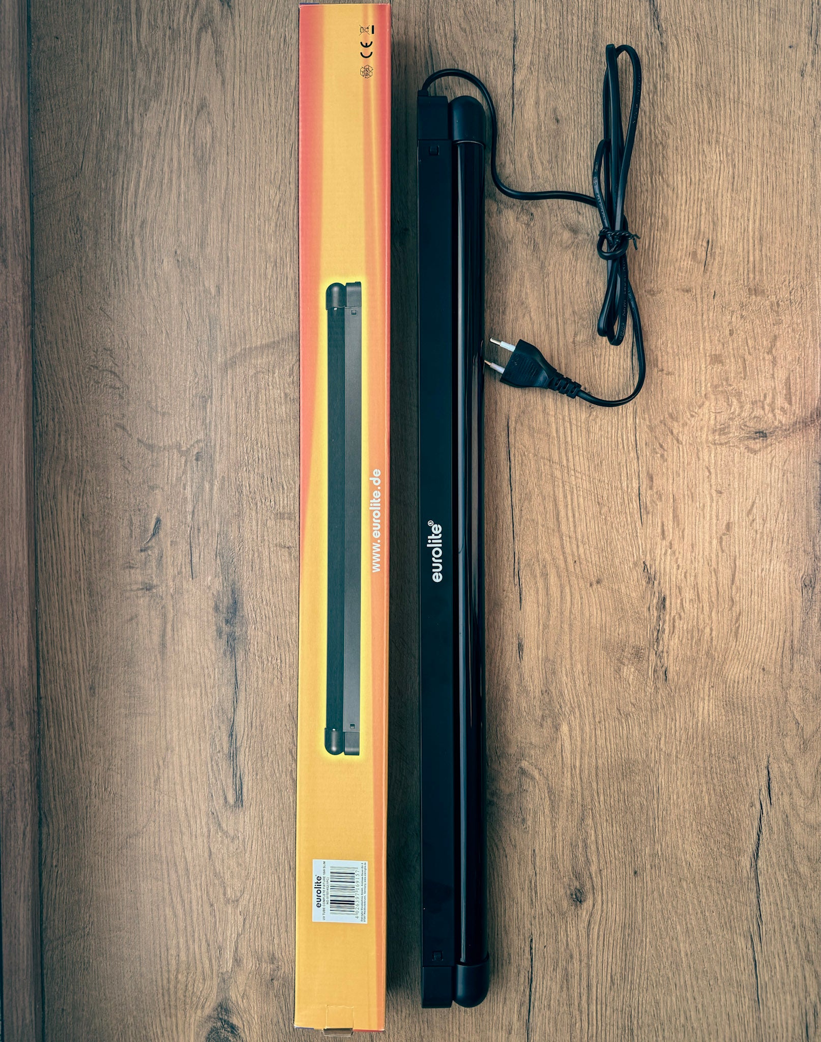 Zářivka s UV světlem o 365nm od německé značky Eurolite. Má sice nižší výkon 18W, ale pro nasvícení jednoho obrázku z blízka postačí.