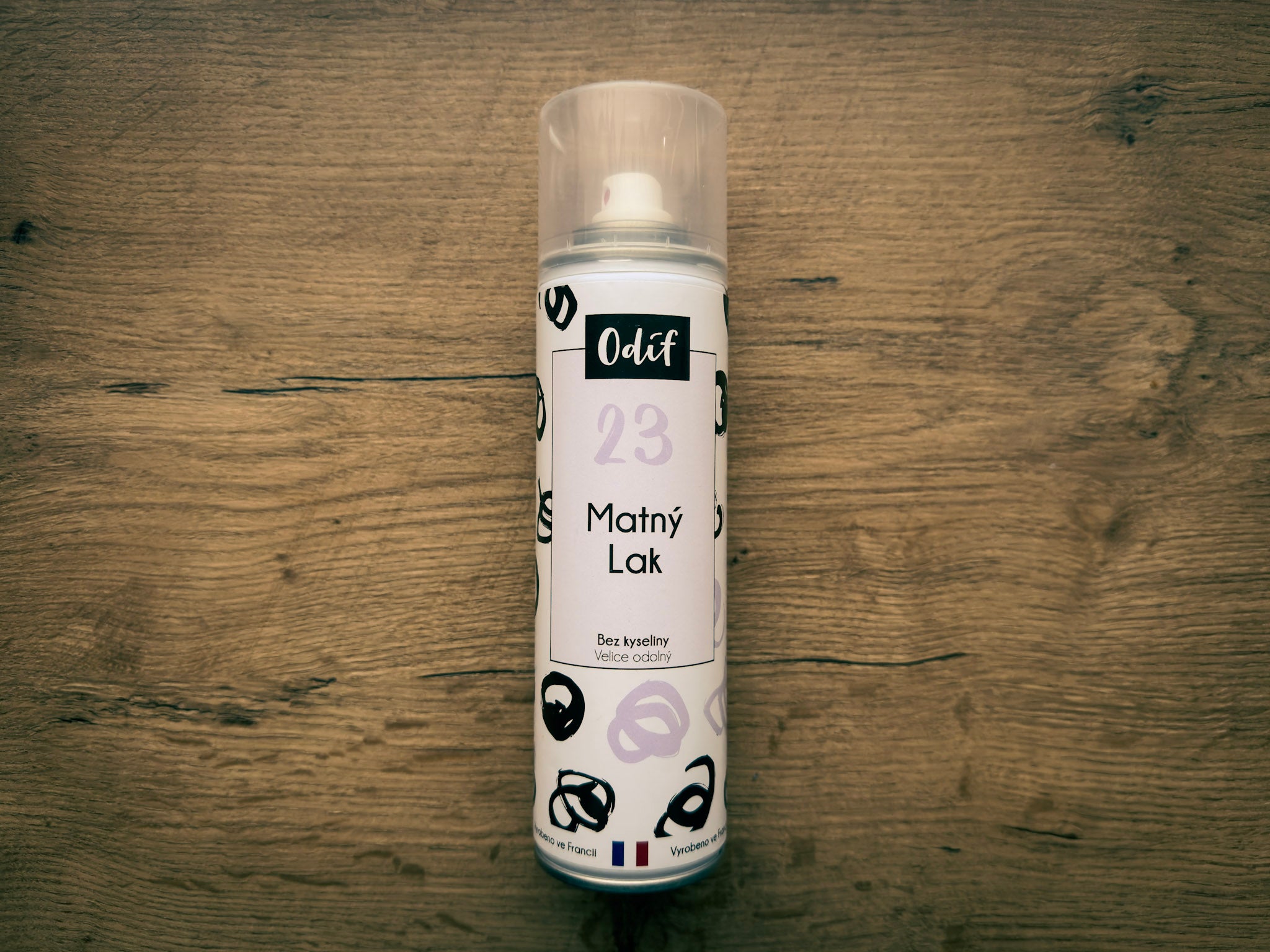 K výslednému zalakování UV svítících obrazů nejraději používám matný lak ve spreji od značky - Odif 23 Matný lak.