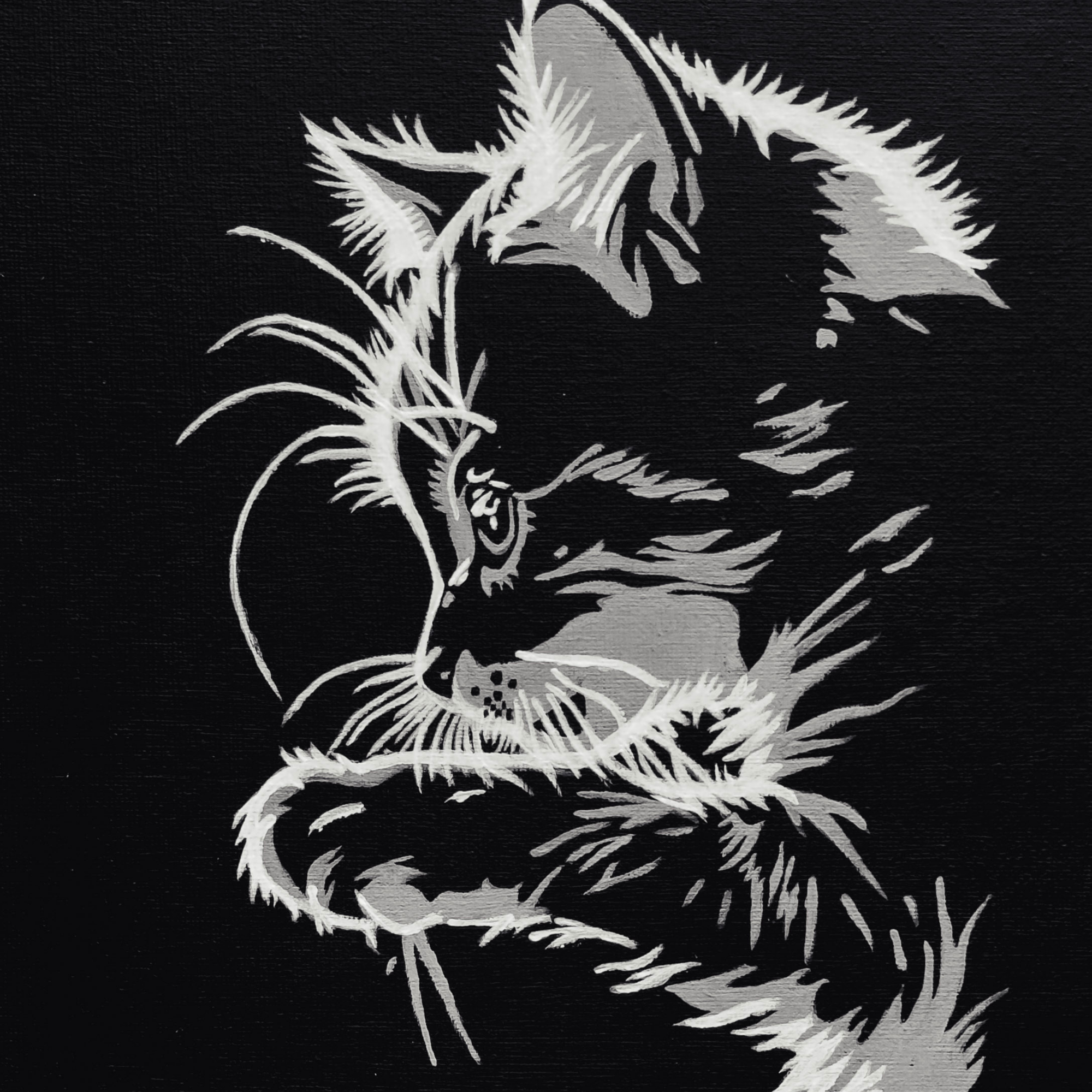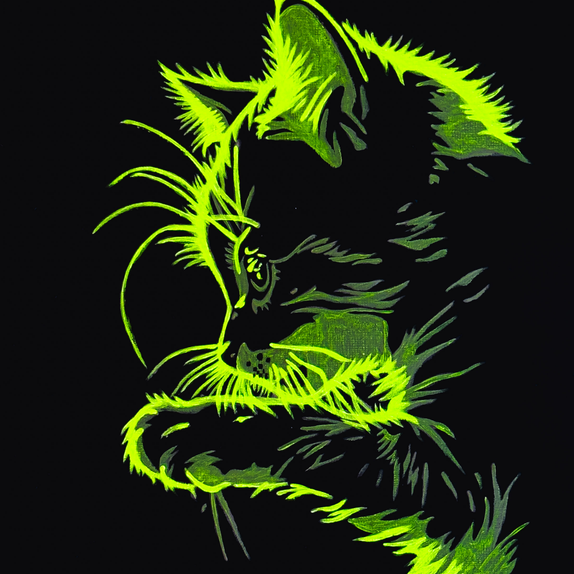 Aiko je jednoduchý PDF fotonávod, díky kterému si doma snadno namaluješ vlastní obraz – koťátko, které je přes den černobílé a v noci září zeleným světlem pod UV lampou.